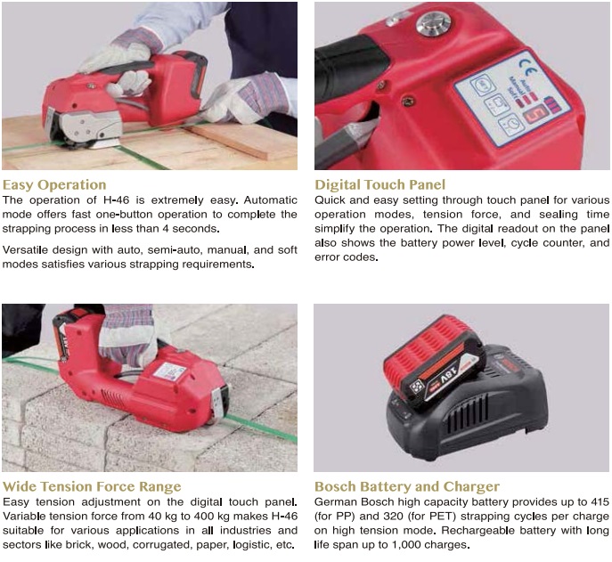 Dzięki elastycznym ustawieniom, dużym zakresem naprężenia taśmy i możliwością stosowania zarówno taśm PP, jak i PET, Kronos H-46 jest idealny do szerokiej gamy zastosowań we wszystkich sektorach przemysłowych. Zapewnia najwyższą wydajność i wytrzymałość.
