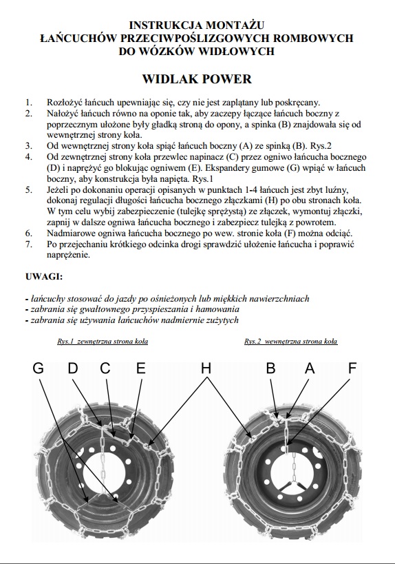 Łańcuch śniegowy do wózków widłowych, układ rombowy, wykonany z łańcucha kwadratowego ø 5.5 mm. Łańcuch kwadratowy wykonany z specjalnego stopu i utwardzony do pełnej głębokości, gwarantuje długą żywotność. Przeznaczony do średnich i ciężkich warunków pracy.