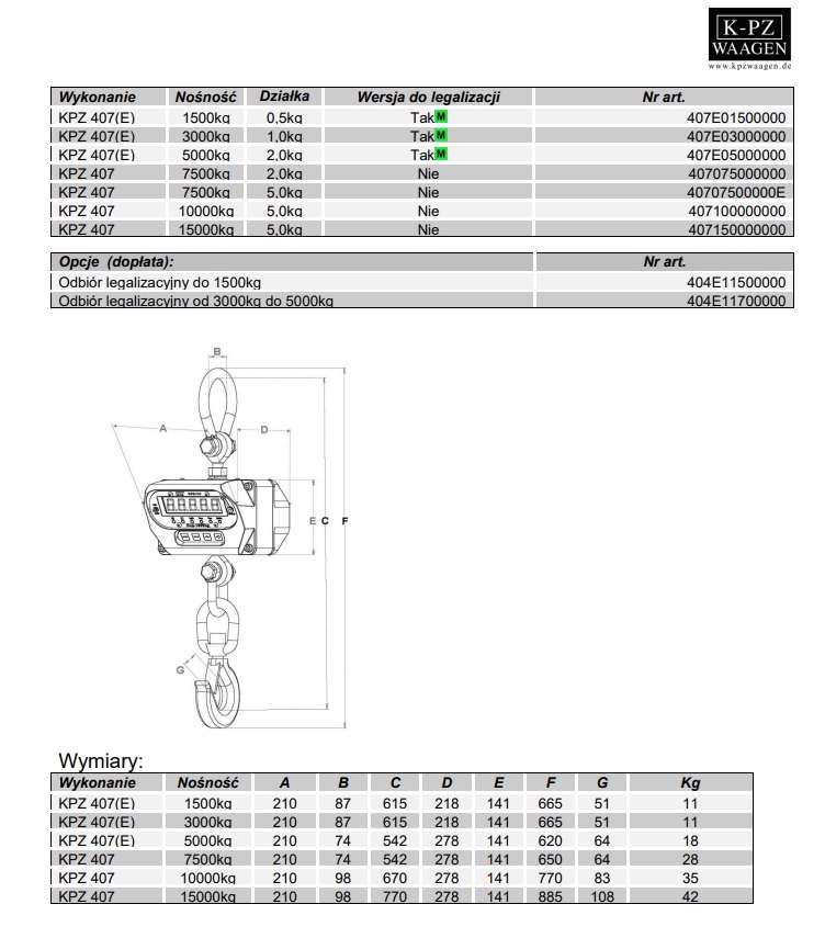 KPZ 407(E) cyfrowa waga hakowa włącznie z pilotem, także z legalizacją