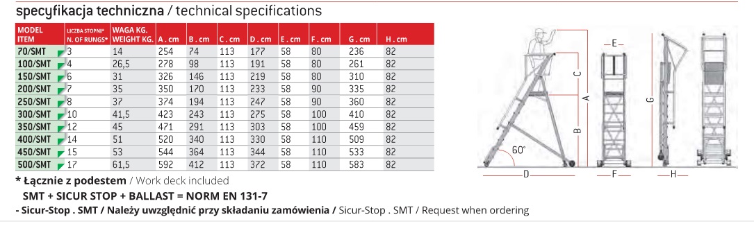 • bezpieczny podest roboczy 52 x 60 cm