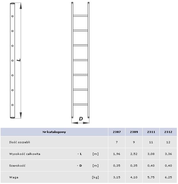 | Opis | Drabina opieralna przystawna wykonana ze stopu aluminium |