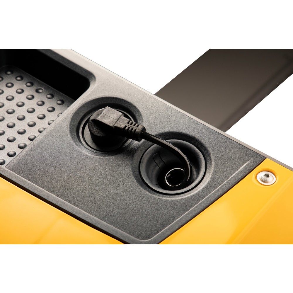 Akumulator litowo-jonowy charakteryzuje się wysoką mocą, stałą wysoką wydajnością przy niskim zużyciu energii, brakiem konieczności serwisowania i długą żywotnością. Możliwość elastycznego i szybkiego ładowania pośredniego akumulatora bez efektu pamięci. Akumulatorowy wózek paletowy aktywuje się poprzez wprowadzenie 4-cyfrowego kodu PIN na wielofunkcyjnej głowicy dyszla. Sterowanie funkcjami podnoszenia, opuszczania, jazdy, przyspieszania, hamowania i kierowania odbywa się wygodnie za pomocą ergonomicznego uchwytu dyszla. Dzięki opcji obsługi jedną ręką praca przebiega jeszcze łatwiej i wygodniej. Ważne wskazania kontrolne, takie jak poziom naładowania akumulatora, licznik motogodzin, prędkość jazdy oraz komunikaty o stanie, są zawsze dostępne w polu widzenia na 2,4-calowym wyświetlaczu LCD. Światło ostrzegawcze natychmiast informuje o zbyt niskim poziomie naładowania akumulatora. |
