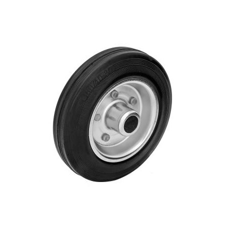 Koła metalowo-gumowe wyróżniają się cichą pracą, odporne są na uderzenia i doskonale tłumią drganie, nie niszcząc przy tym podłoża. Można je stosować w temperaturze od -20°C do +60°C. Twardość bieżnika koła z gumy pełnej wynosi 80° Shore’a. KOŁO: |