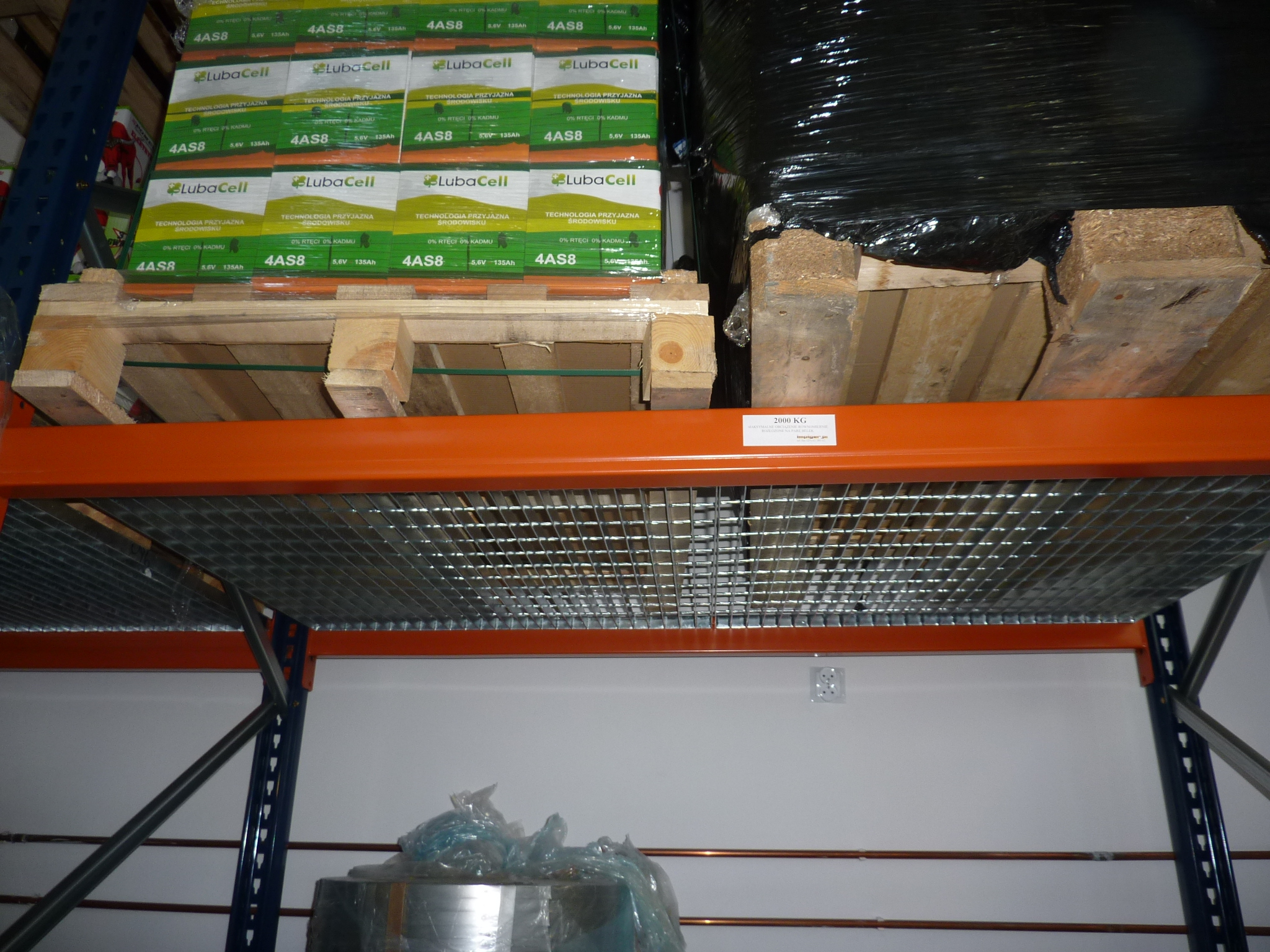 1000 kg- paleta EURO musi opierać się o belki regału, w przeciwnym wypadku krata nie przeniesie tego obciążenia. |