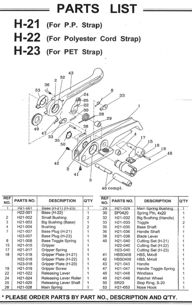 Napinacz H-21 / Bandownica do taśmy PP, WG, GW, CS / H21 (oryginał)
