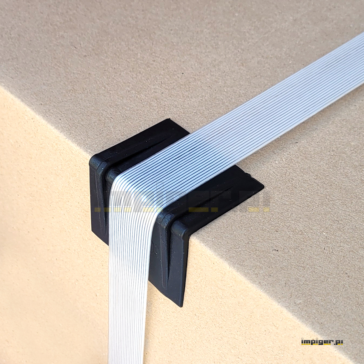 Gruby, mocny narożnik pozwala używać go pod wszystkimi rodzajami taśm, w tym taśm stalowych, o szerokości do 32mm.
