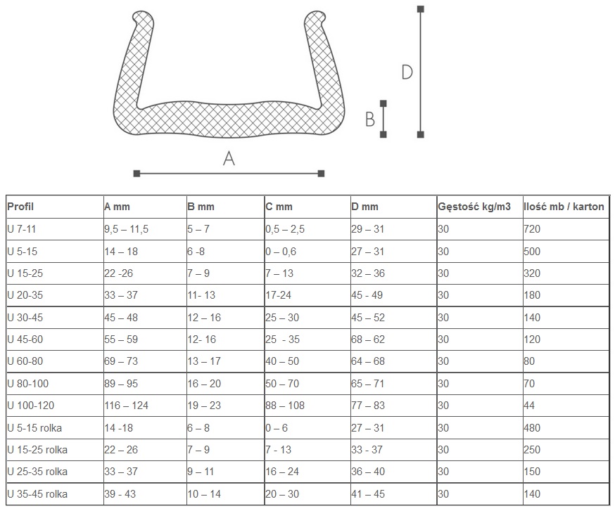 | Typ Produktu | Profile ochronne z pianki PE | |||||||||||||||