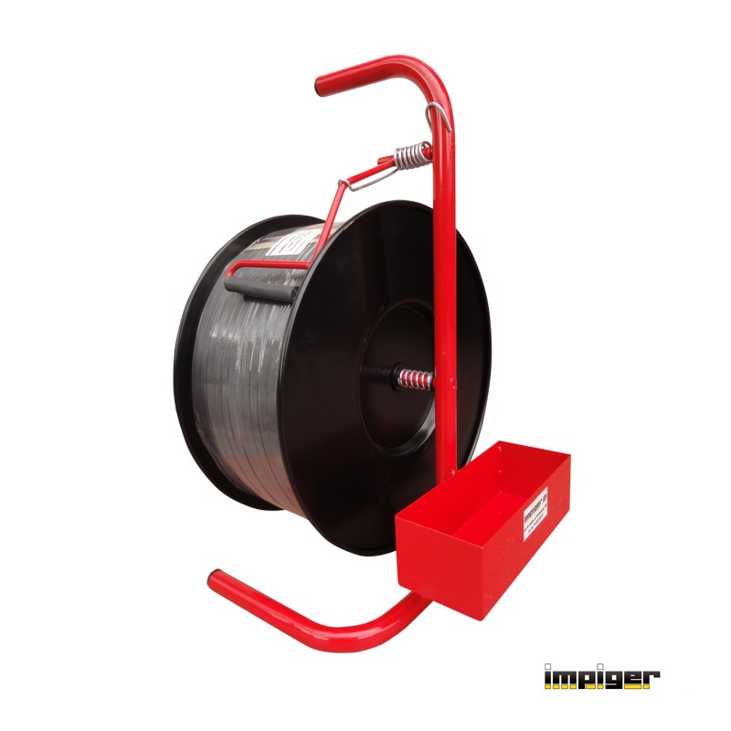 Odwijacz-Stojak służy do odwijania taśmy spinającej z rolki. Posiada hamulec oraz dwie metalowe tarcze zabezpieczające taśmę przed samoczynnym rozwijaniem się. W metalowym pojemniku zmieszczą się bandownica, zapinki oraz inne akcesoria niezbędne przy spinaniu. - Przeznaczony jest do taśm spinających polipropylenowych PP oraz kompozytowych CS nawiniętych na tuleje o średnicy wewnętrznej fi 200mm. - Solidna metalowa konstrukcja malowana proszkowo - Pojemnik metalowy o wymiarach 280x100x80 mm (szer. x dług. x głęb.)
