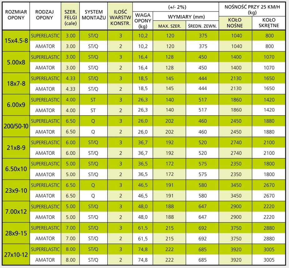 | Waga opony | 61,5 kg |
