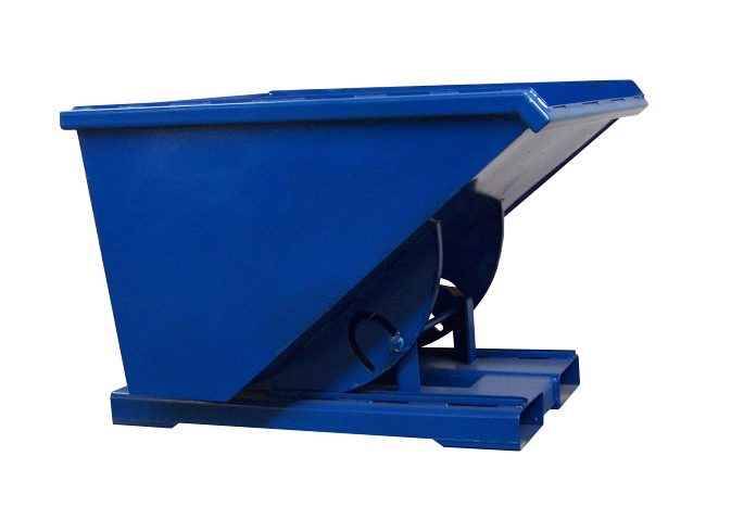 | Zalety | * Łatwe opróżnienie pojemnika przez zwolnienie blokady z pozycji operatora * Samoczynny powrót do pozycji wyjściowej * Transport wózkiem widłowym jak i ręcznym wózkiem paletowym * Możliwość wyposażenia w zestaw kółek skrętnych |