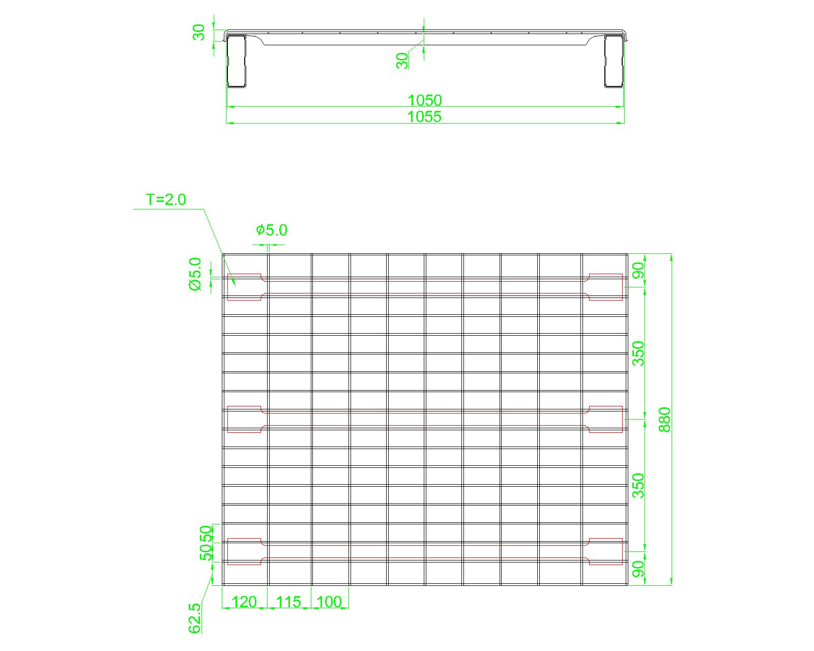 Półka siatkowa 1050x880mm do 800kg z 3 omegami