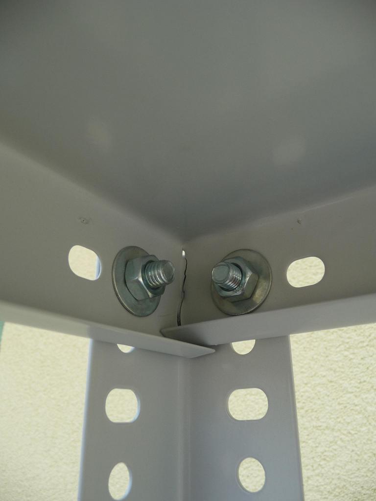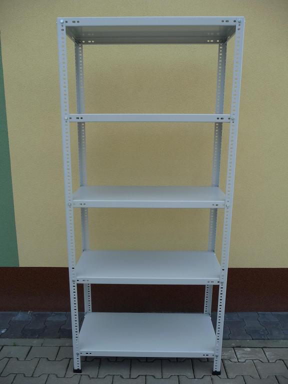 Regał składa się z czterech słupów nośnych z kątownika perforowanego 35x35 oraz z półek profilowanych z blachy montowanych na dowolnej wysokości. Każdy regał wyposażony jest w stopki z tworzywa sztucznego oraz komplet śrub. Regały malowane są lakierami proszkowymi. |