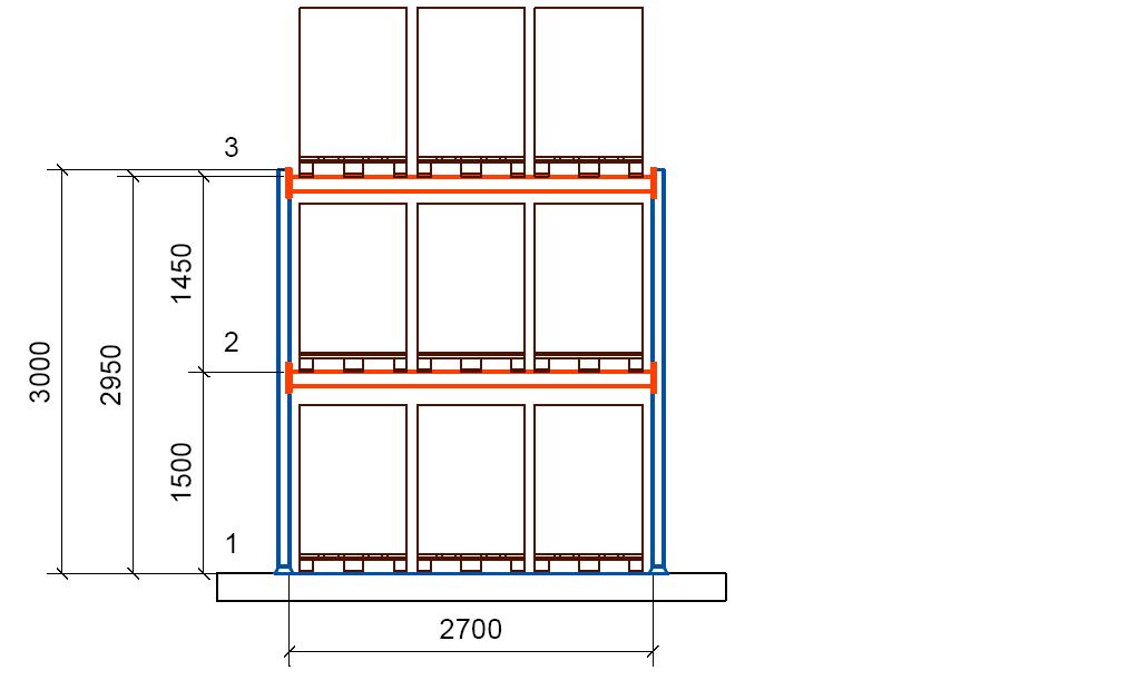 Regał paletowy 3m (9 miejsc paletowych x 1T) zestaw NOWY