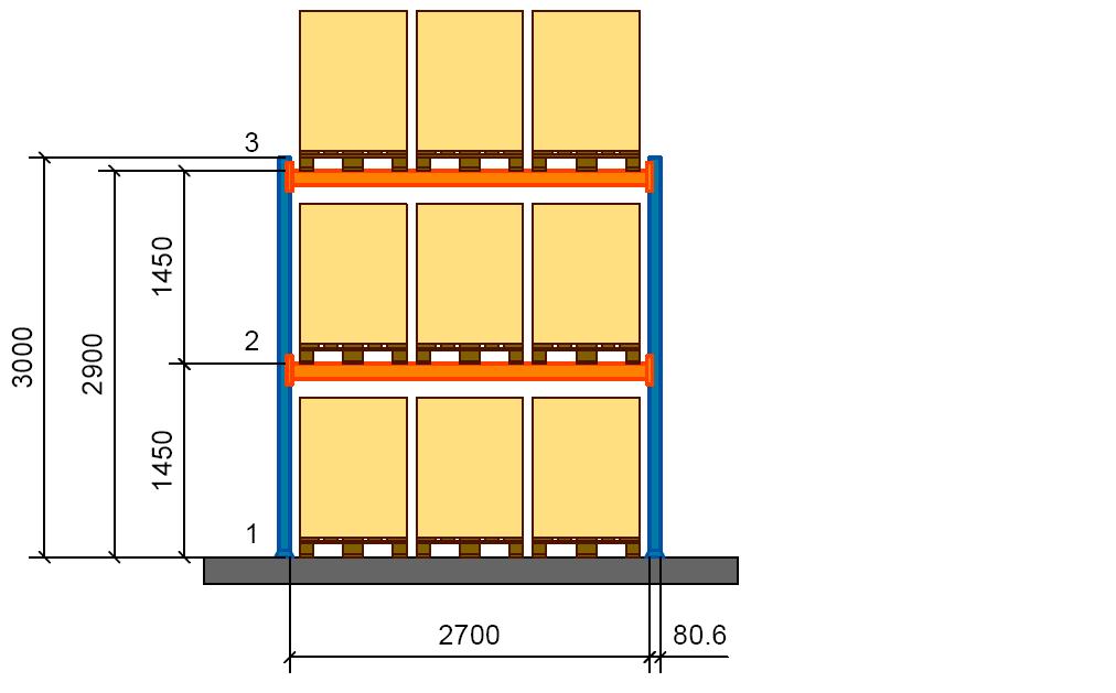 | Skład zestawu | 2 ramy 3m P80, 4 stopy , kotwy 120mm ocynk, 2 podkładki do poziomowania 1 mm ocynk, 2 podkładki do poziomowania 3 mm ocynk, 4 belek(trawersów)2,7m nośność 3T, naklejki z nośnością 3T, deklaracja zgodności, instrukcja obsługi i użytkowania regału paletowego |