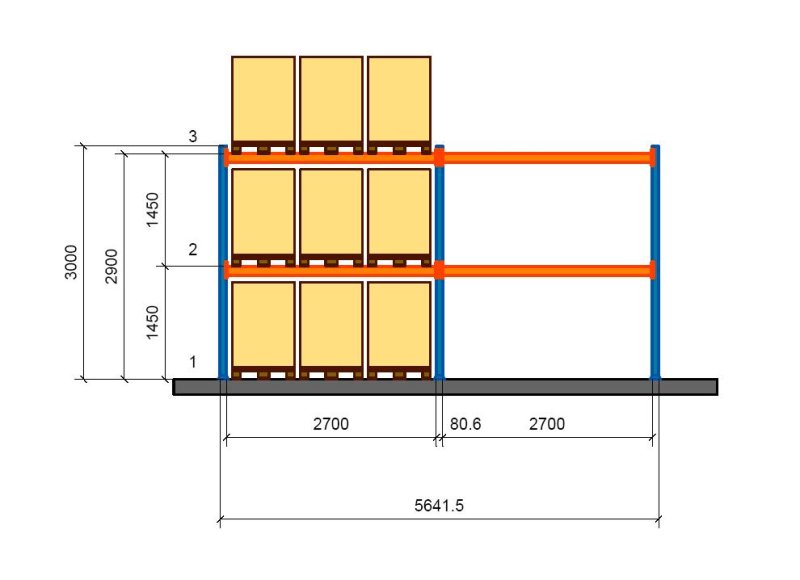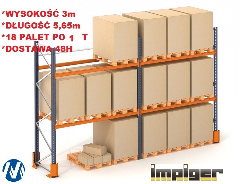 Regał paletowy nowy 3m zestaw (18 miejsc paletowych)