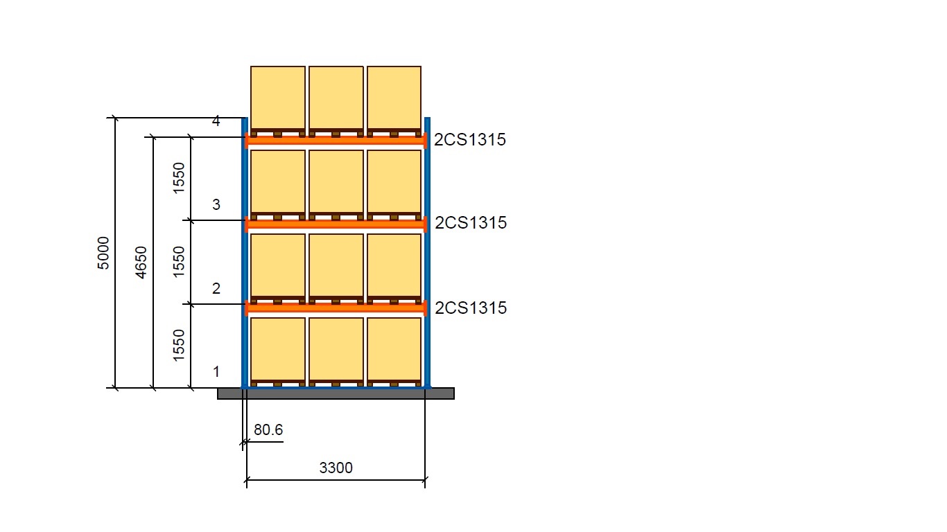 Regał paletowy nowy 5m (12 miejsc paletowych) zestaw z belkami 3,3m