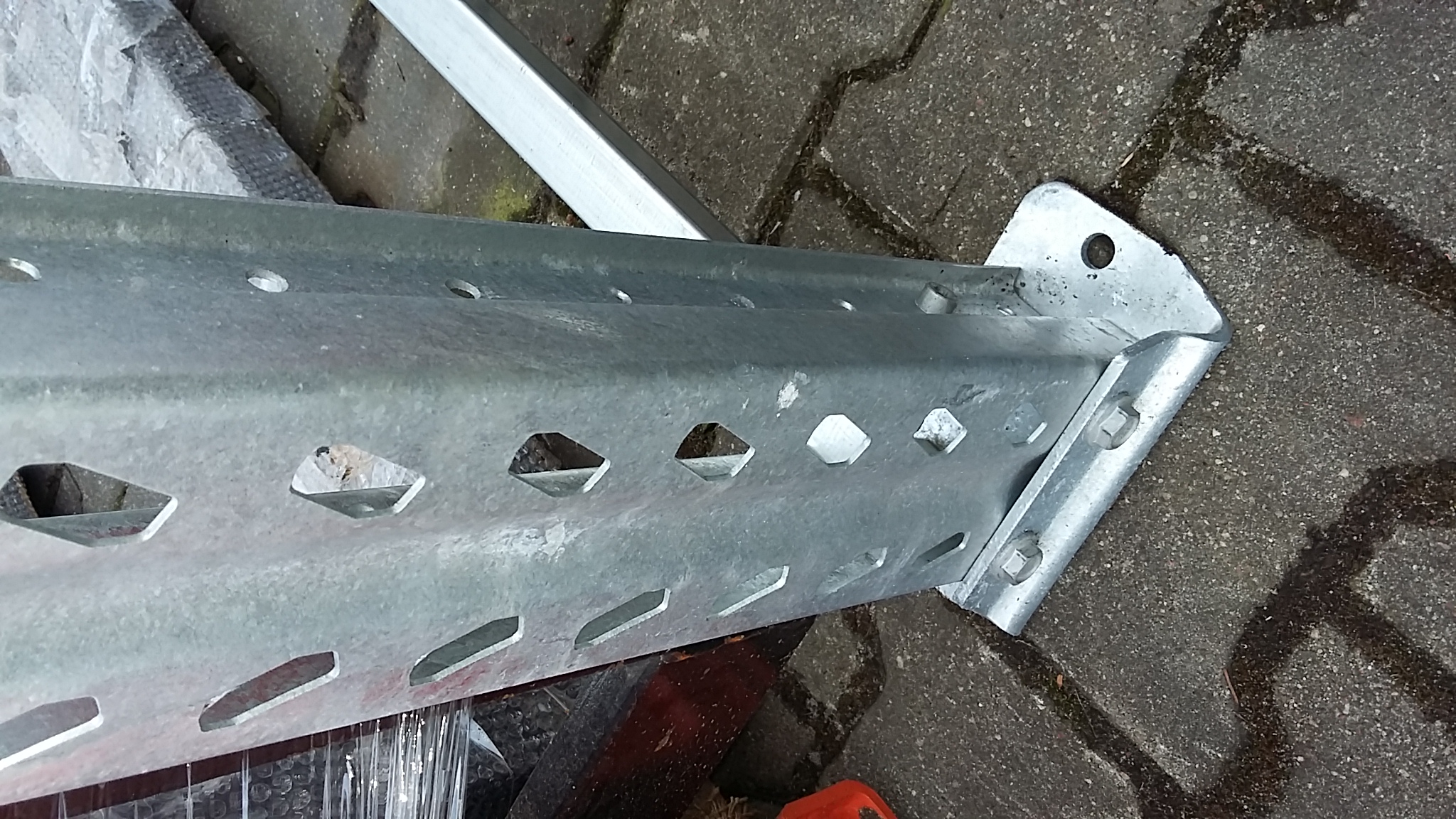 | Skład zestawu | 3 ramy ocynk kompletne 4m/1,1m HX102 , 6 stóp, kotwy 12x120mm ocynk, 3 podkładki do poziomowania 1 mm ocynk, 3 podkładki do poziomowania 3 mm ocynk, 8 belek(trawersów)2,7m nośność równomierna 3T ocynk ogniowy, naklejki z nośnością 3T, deklaracja zgodności, instrukcja obsługi i użytkowania regału paletowego |
