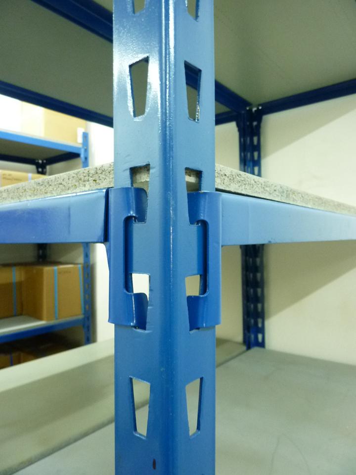 | Opis | *prosty montaż bez elementów złącznych *możliwość regulacji wysokości półek *możliwość dokupienia pojedynczych słupów i półek *możliwość ustawienia regałów w stabilne ciągi |
