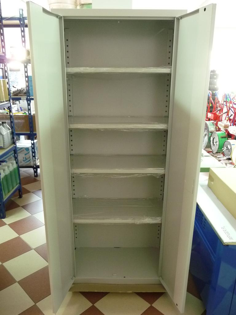Szafy wykonane z blachy stalowej o grubości 0,6-0,8 mm, 4 półki z możliwością regulacji pionowej, estetyczna i solidna klamka, malowane ekologiczną farbą proszkową, zawiasy wewnętrzne kryte. Szafy posiadają certyfikat COBRABID-BBC potwierdzający, spełnianie norm PN-F 06009:2001 , PN-F 06010-05:1990 , PN-EN 14073-2:2006. |