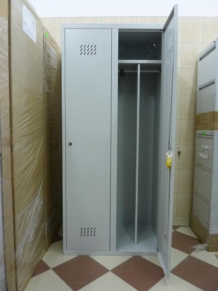 Konstrukcja szafy wykonana z blachy stalowej o grubości 0,6 - 0,8 mm, malowana ekologiczną farbą proszkową. Drzwi trzypunktowo ryglowane w standardzie, wyposażone w zamek cylindryczny. Komora szafy wyposażona w drążek na odzież z dwoma haczykami i 1 półkę. Posiada komorę podzieloną na dwa przedziały: umożliwia oddzielenie odzieży czystej od brudnej. Otwory wentylacyjne w drzwiach. |