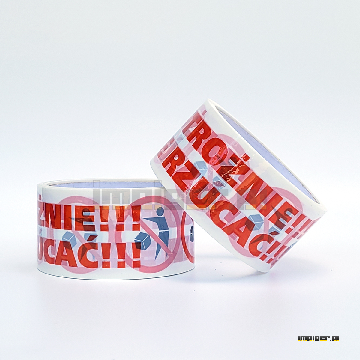 Taśma klejąca pakowa ostrzegawcza 48mm 40m z nadrukiem "OSTROŻNIE NIE RZUCAĆ"