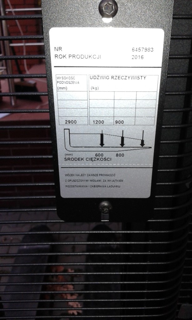 | Udźwig nominalny | 1000 kg przy środku ciężkości 600mm |