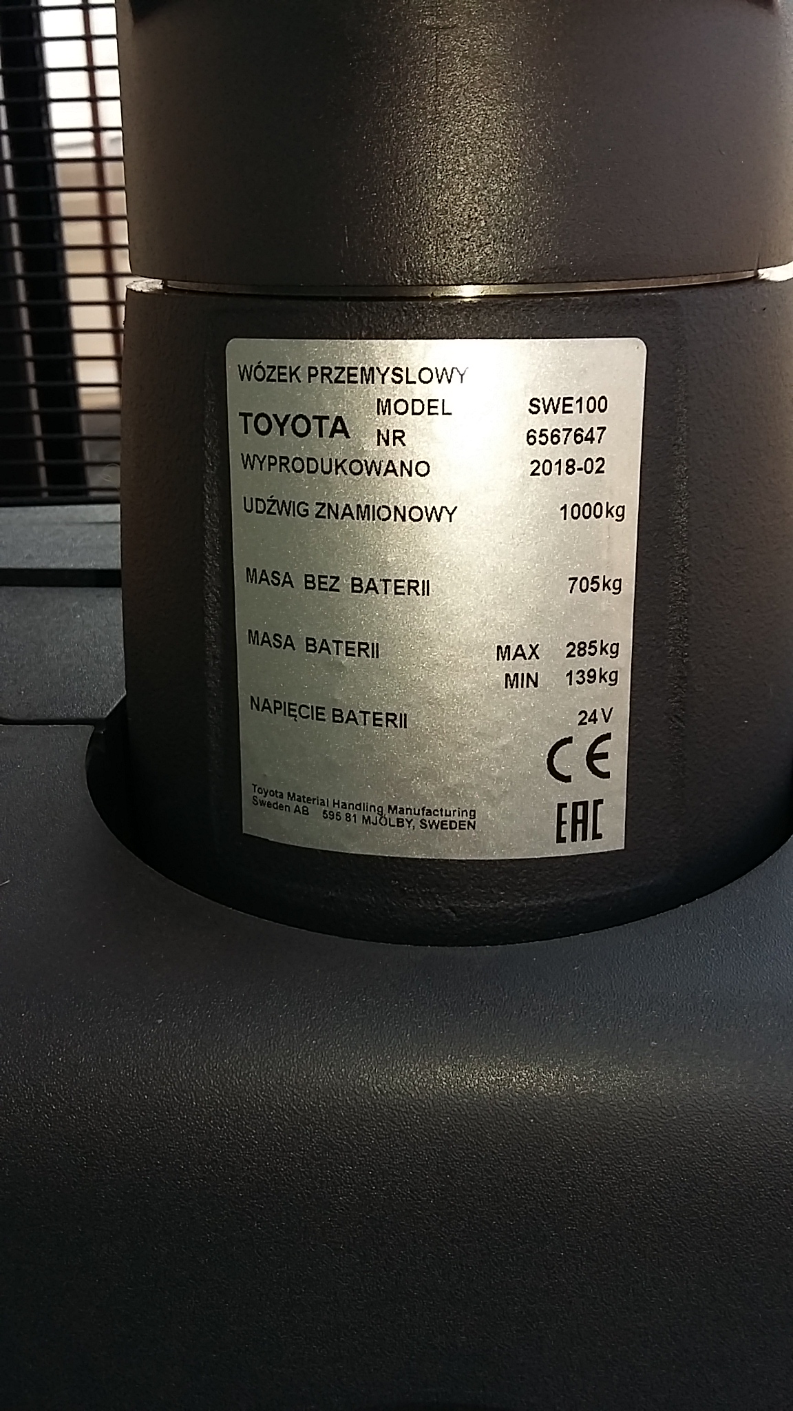 Specyfikacja wózka Toyota SWE100 (kliknij)
