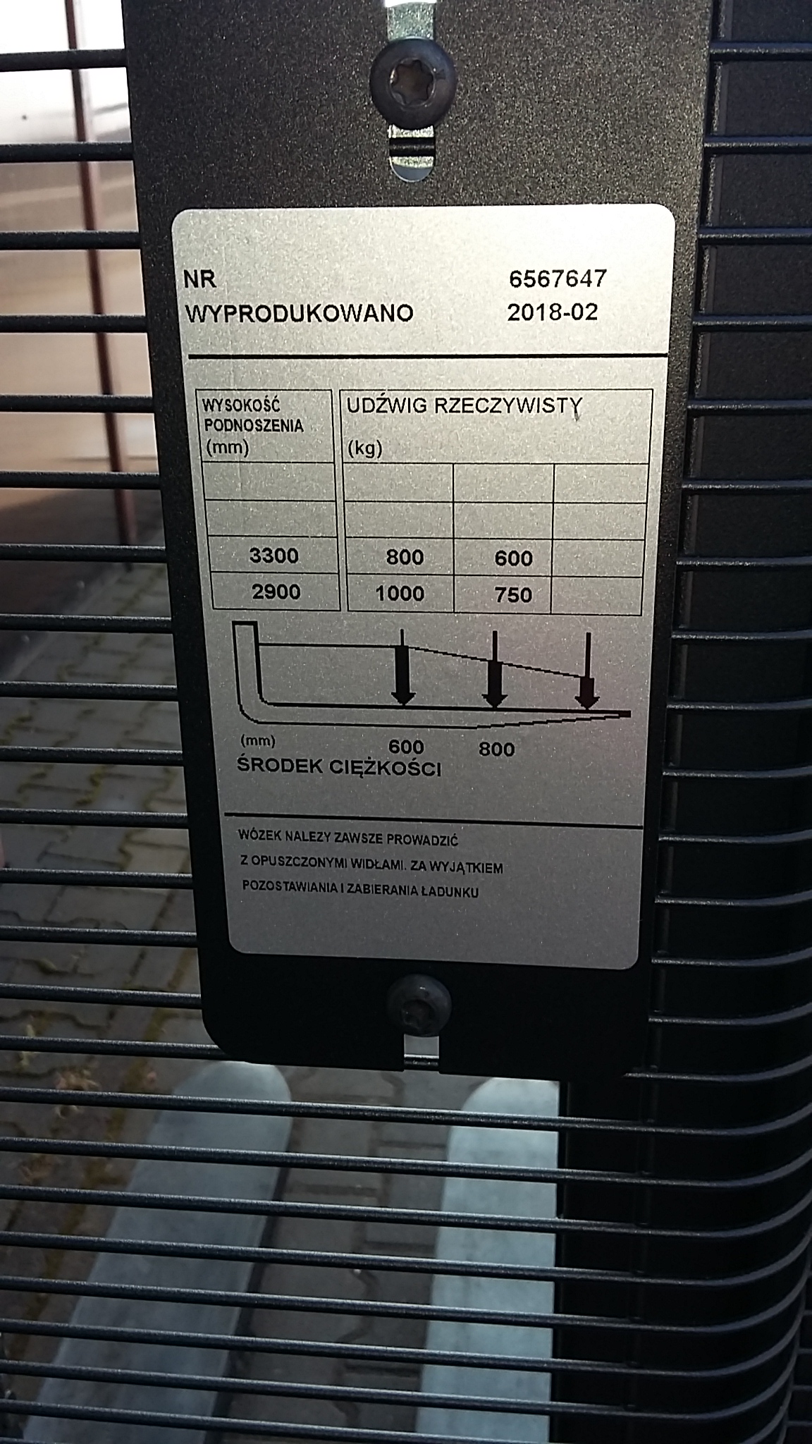 1200 kg przy środku ciężkości 600mm