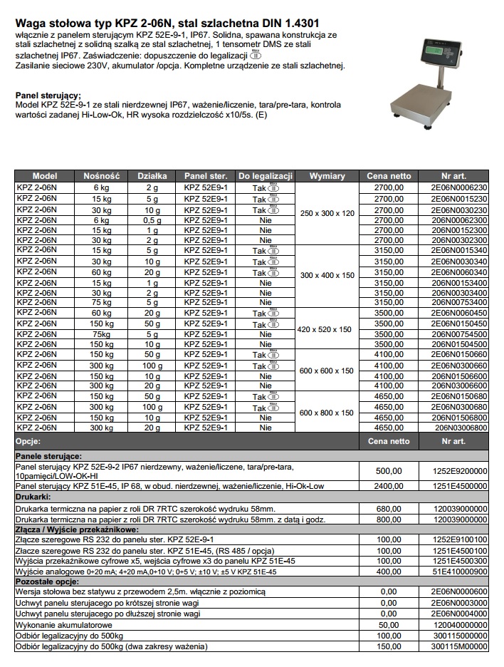 Waga platformowa stołowa KPZ 2-06N stal szlachetna DIN 1.4301