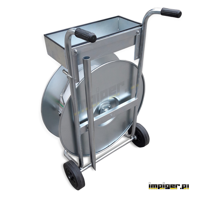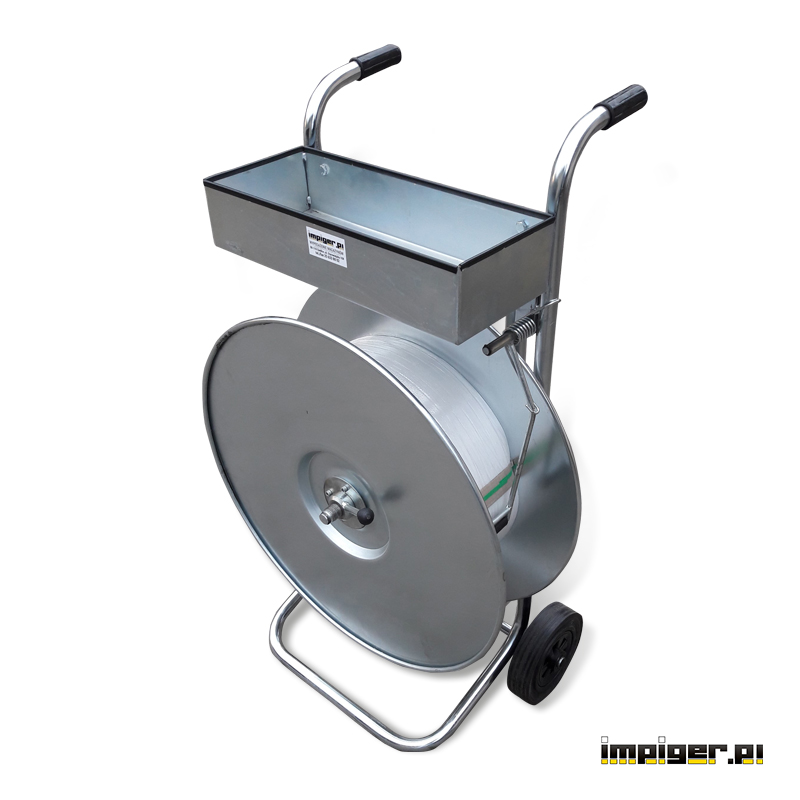 | Zastosowanie | Wózek odwijacz do taśmy PP oraz PET służący do odwijania rolki z taśmą spinającę. Niezbędny w pakowaniu. Hamulec zapobiega samoczynnemu rozwijaniu się taśmy. Duży metalowy pojemnik. |