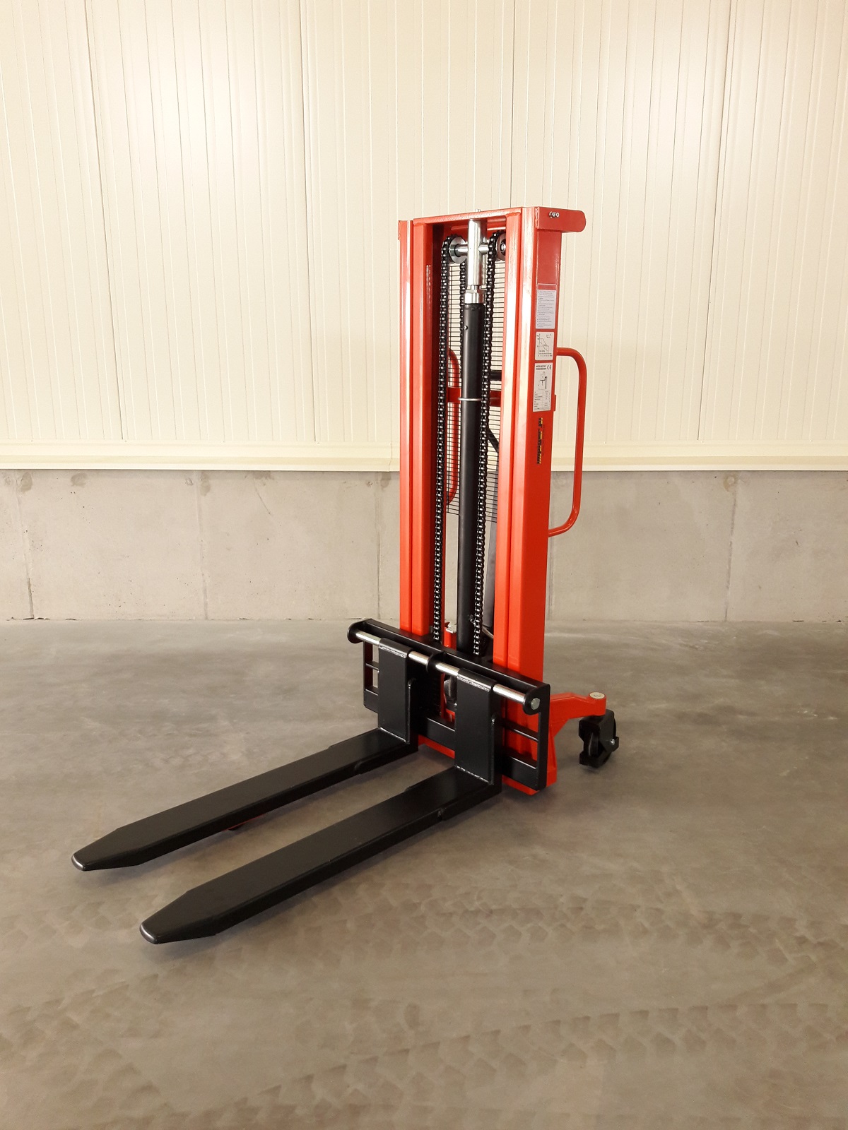Wózek paletowy masztowy MSE 1025 (1T / 2,5m) z regulowanym rozstawem wideł