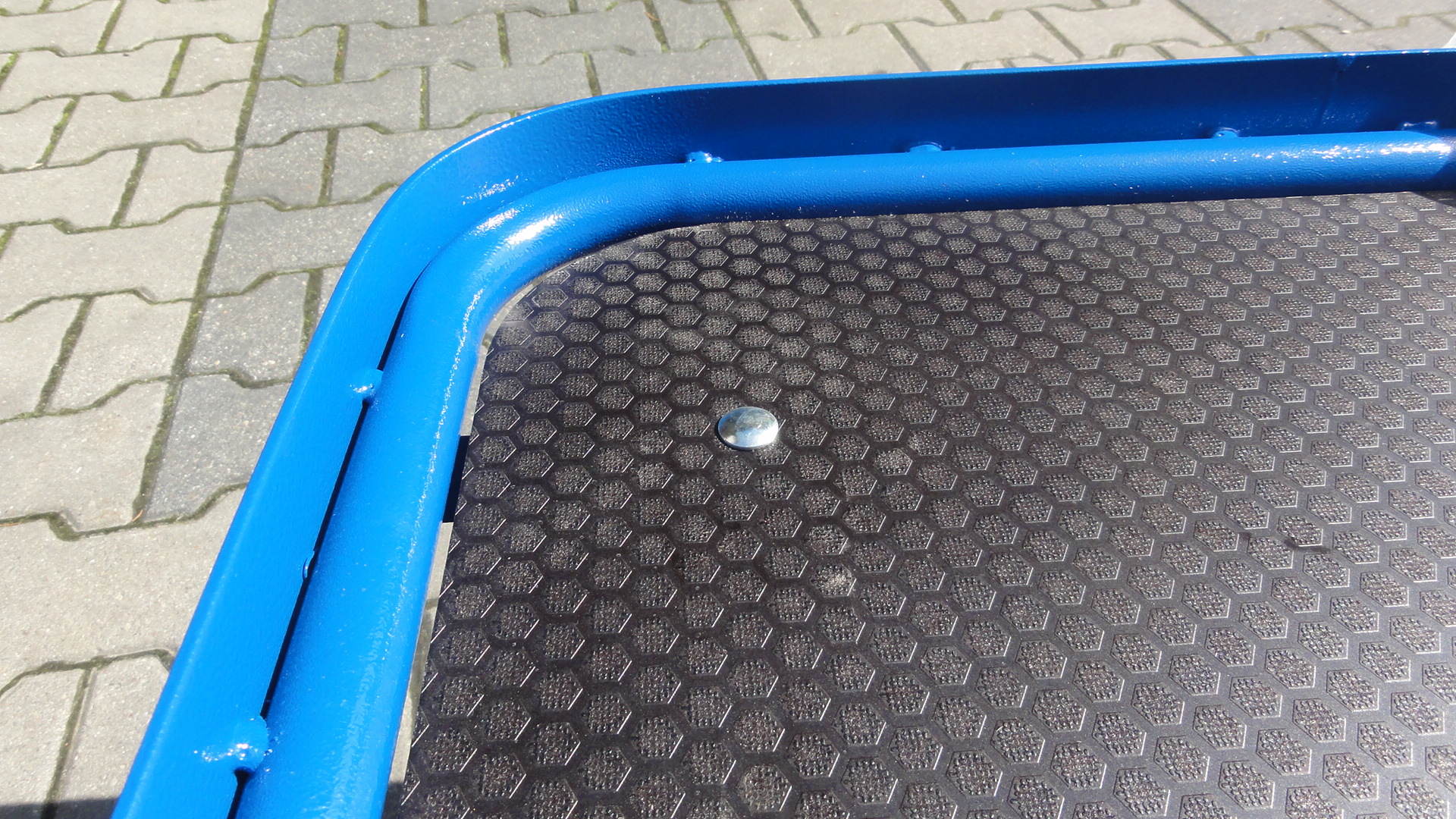Konstrukcja wózka malowana proszkowo gwarantuje odpowiednie zabezpieczenie antykorozyjne i pozwala na jego użytkowanie przez wiele lat.