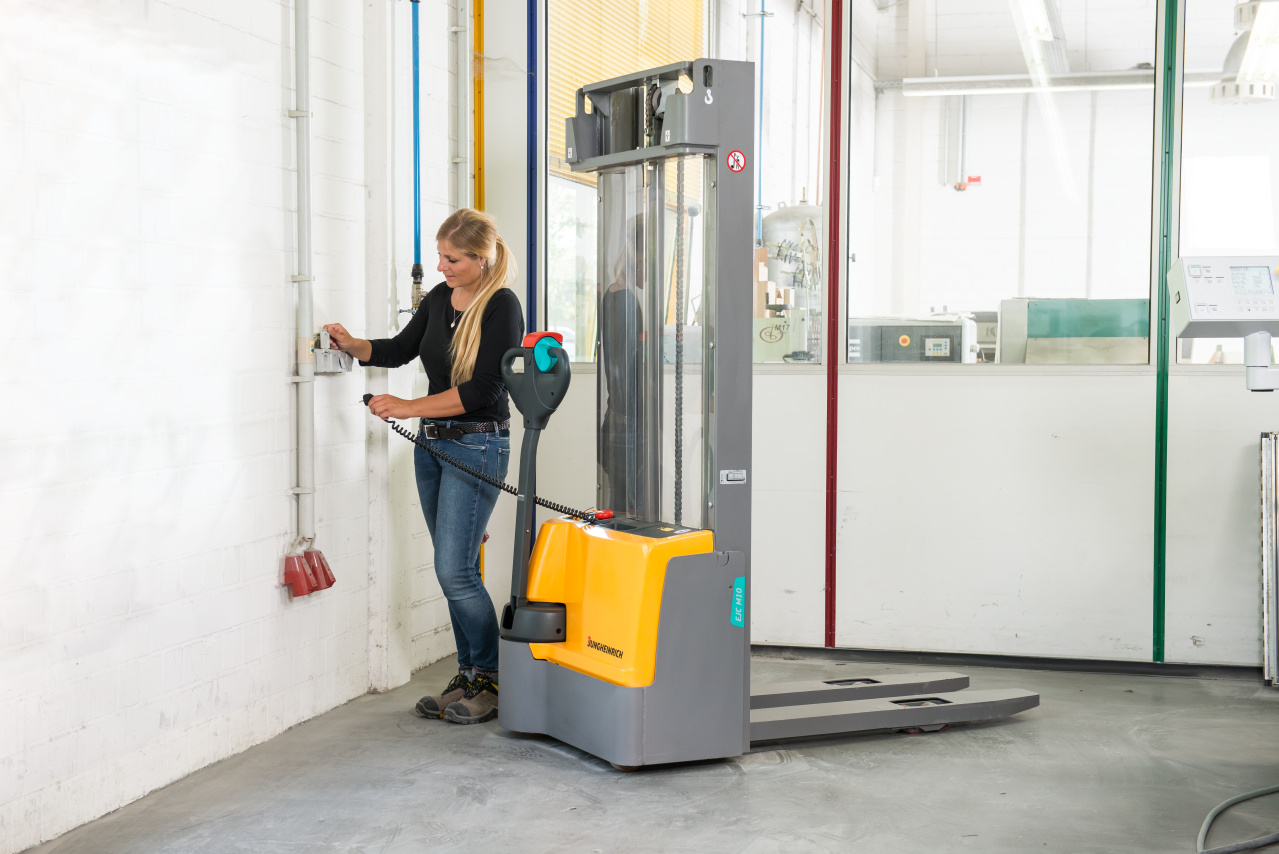 - Akumulatorowy podnośnikowy wózek widłowy Jungheinrich EJC M10ZT z dyszlem jest pojazdem pomocniczym. Nadaje się do lekkich i średnio intensywnych prac przeładunkowych na równych, gładkich nawierzchniach. |