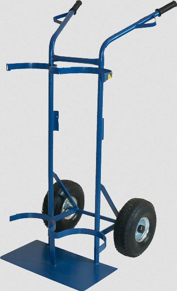Polski wózek transportowy przeznaczony do przewozu butli z gazem technicznym (tlen, acetylen).