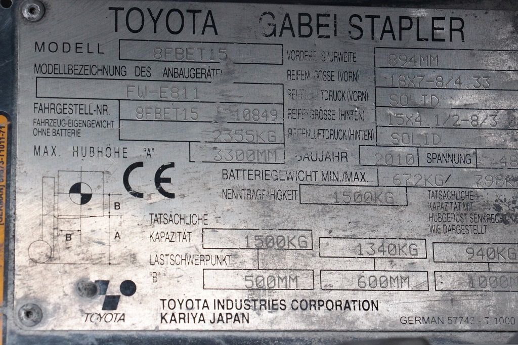 Wózek widłowy 3 kołowy 8FBET15 Toyota 2010r 3,3m przesuw wolny skok