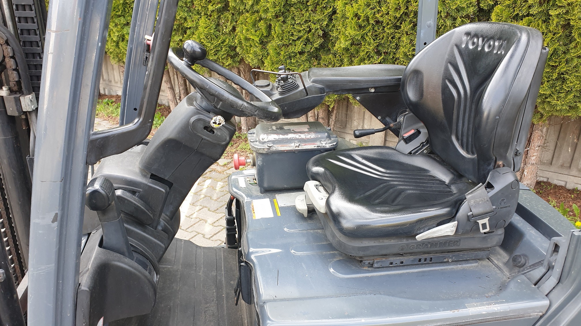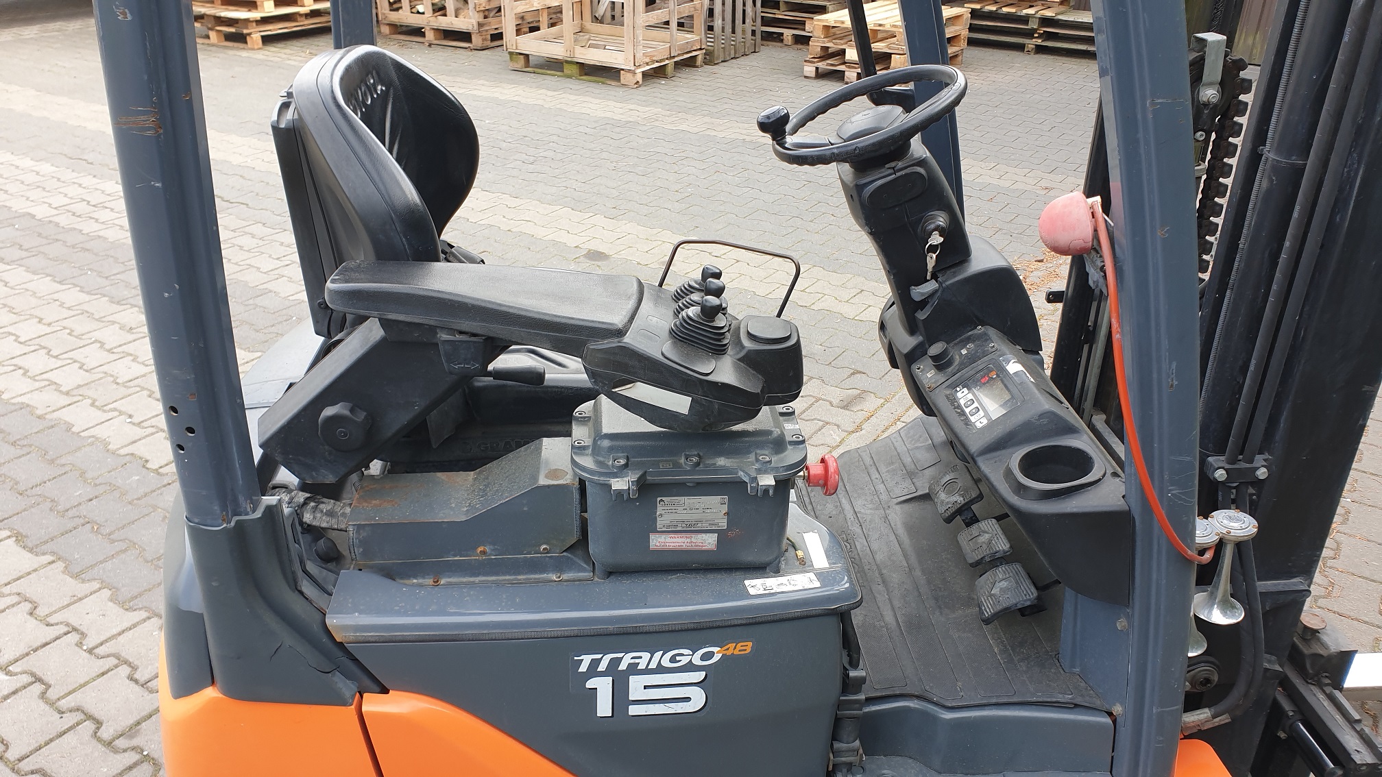Wózek widłowy elektryczny 3-kołowy Nr. Seryjny 8FBET15-E10849 Marka/Model: Toyota / 8FBET15 Udźwig: 1500 kg Widły: 1150 mm Wysokość podnoszenia: 3300 mm Wysokość wózka (masztu) widły opuszczone: 2150mm Maszt 2W330 z pełnym wolnym skokiem wideł Przesuw boczny wideł Opony pełne Rocznik 2010 Motogodziny 5590 mth Bateria 48v Ładowarka zewnętrzna w komplecie |