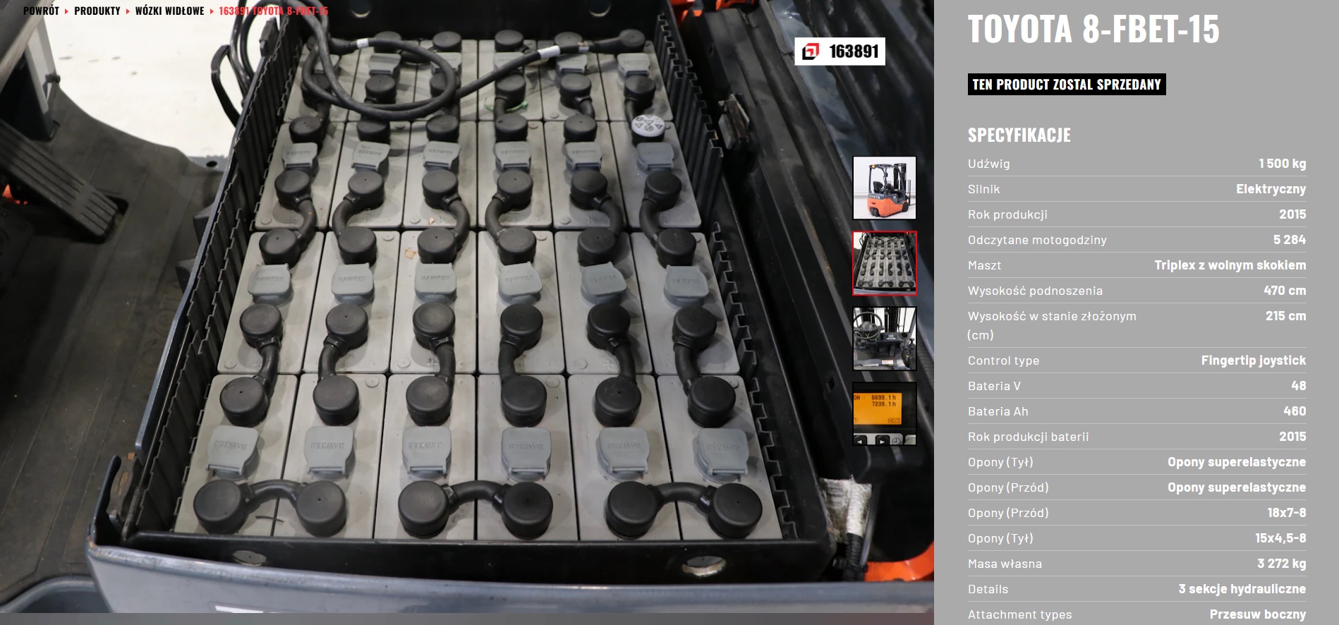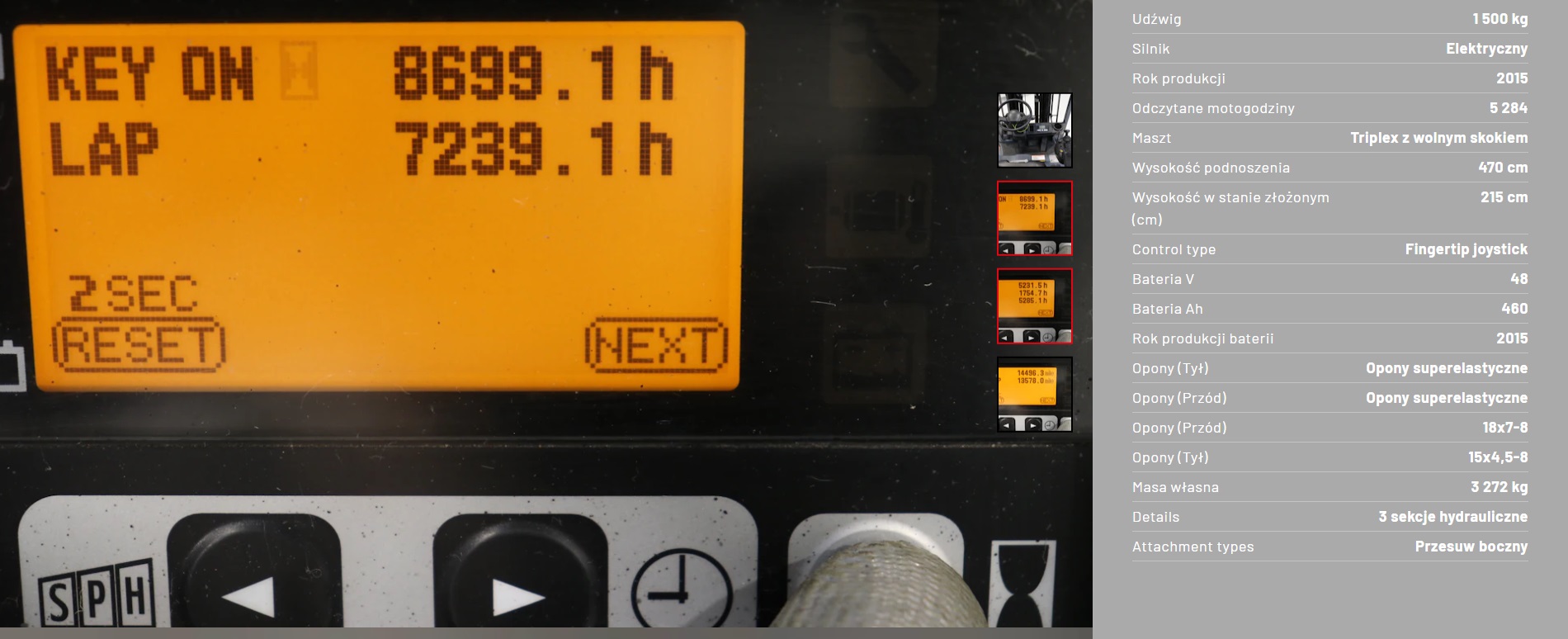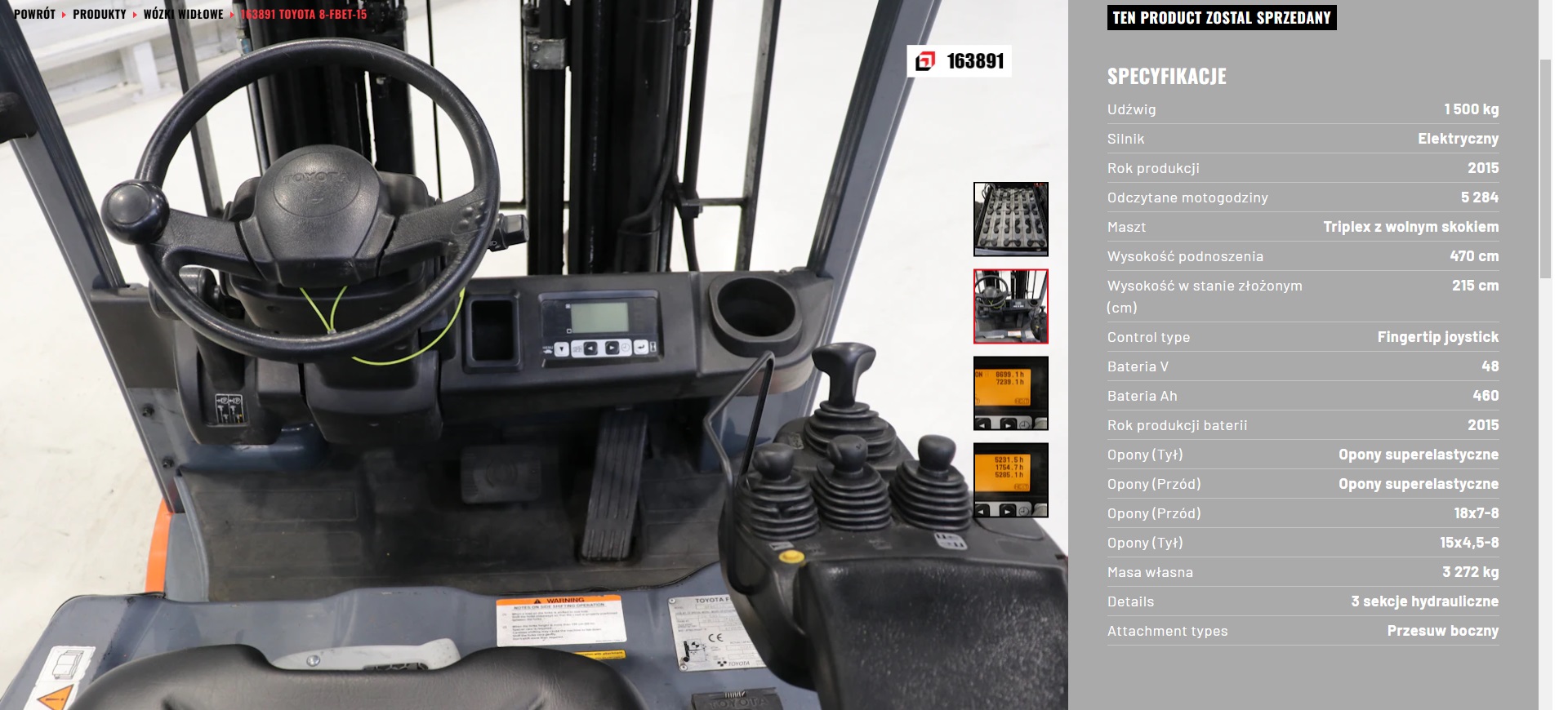 Wózek widłowy 3 kołowy 8FBET15 Toyota 2015r 4,7m przesuw wolny skok