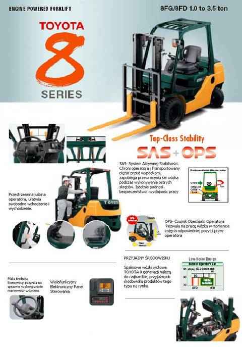 | SAS | System Aktywnej Stabilności - Chroni operatora i transportowany ciężar przed wypadkami, zapobiega przewróceniu się wózka podczas wykonywania ostrych skrętów. Istotnie podnosi bezpieczeństwo i wydajność pracy. |