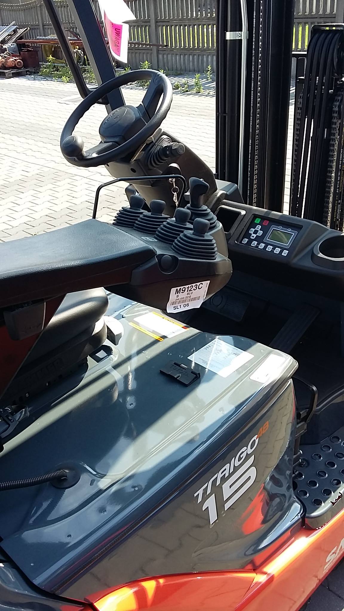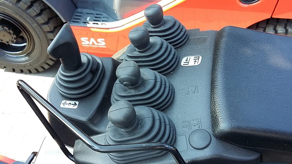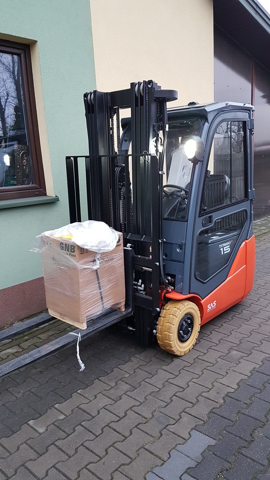 | Osprzęt | przesuw boczny zintegrowany, dodatkowa 4 funkcja hydrauliczna, Bateria 500Ah z centralnym uzupełnianiem wody destylowanej i zbiornikiem, prostownik 3 fazowy HF80Ah |