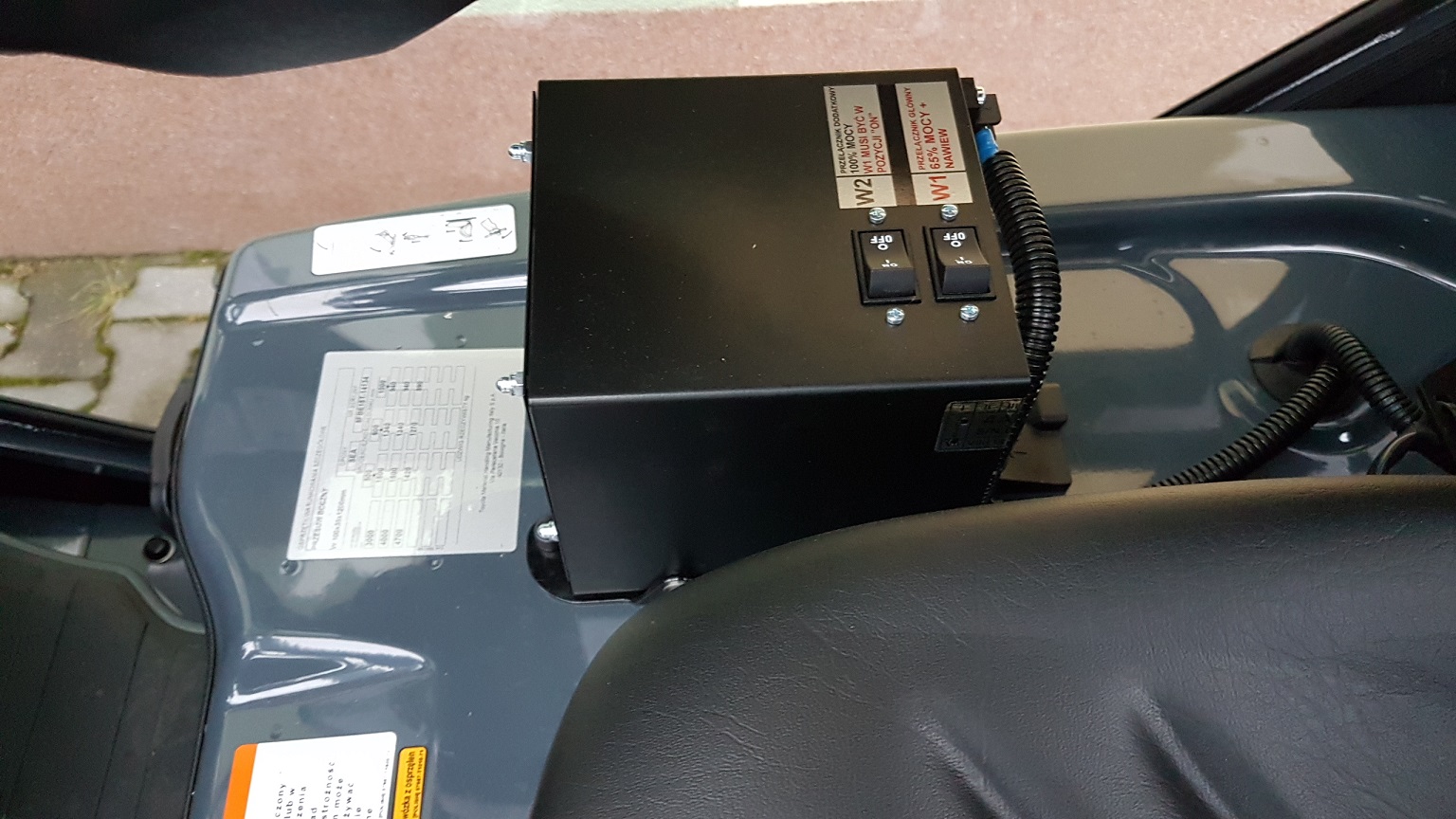| OPS | Czujnik Obecności Operatora - Pozwala na pracę wózka w momencie zajęcia odpowiedniej pozycji przez operatora. |