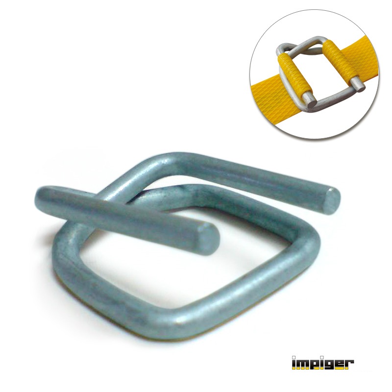 Zapinki druciane są najpopularniejszym sposobem łączenia taśm spinających, które przeznaczone są do mocowania ładunków na paletach, w paczkach itp. Zapinki występują również pod nazwą spinki, klamerki czy spinacze zaciskowe. Zapinka powinna być dopasowana do szerokości taśmy (nie może być za wąska, ani zbyt szeroka). Do spinania taśmy zapinką drucianą niezbędny jest napinacz: np. napinacz H-21/H-22 dla taśm o szerokości od 9 do 19mm. Oferowane przez nas zapinki wykonane są z wysokiej jakości drutu stalowego o właściwościach sprężynowych. Posiadają specjalny profil wygięcia, który powoduje, że zapinki nie rozciągają się pod wpływem działania siły naciągu taśmy, lecz zaciskając tworzą pewne i mocne połączenie. Dodatkowo pokryte są warstwą cynku zabezpieczającą je przed korozją. Zapinka druciana ocynkowana CB6-19mm (drut fi 3,4mm) |