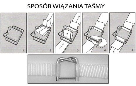 Spinacze zaciskowe druciane służą do łączenia taśm polipropylenowych oraz poliestrowych o szerokości 25 mm w systemach wiązania i mocowania ładunków.
