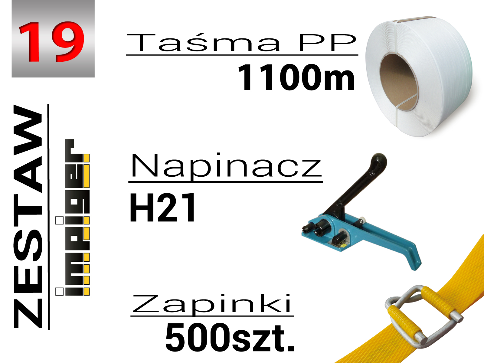 Zestaw do pakowania ECO: napinacz H21, taśma PP 19mm, zapinki