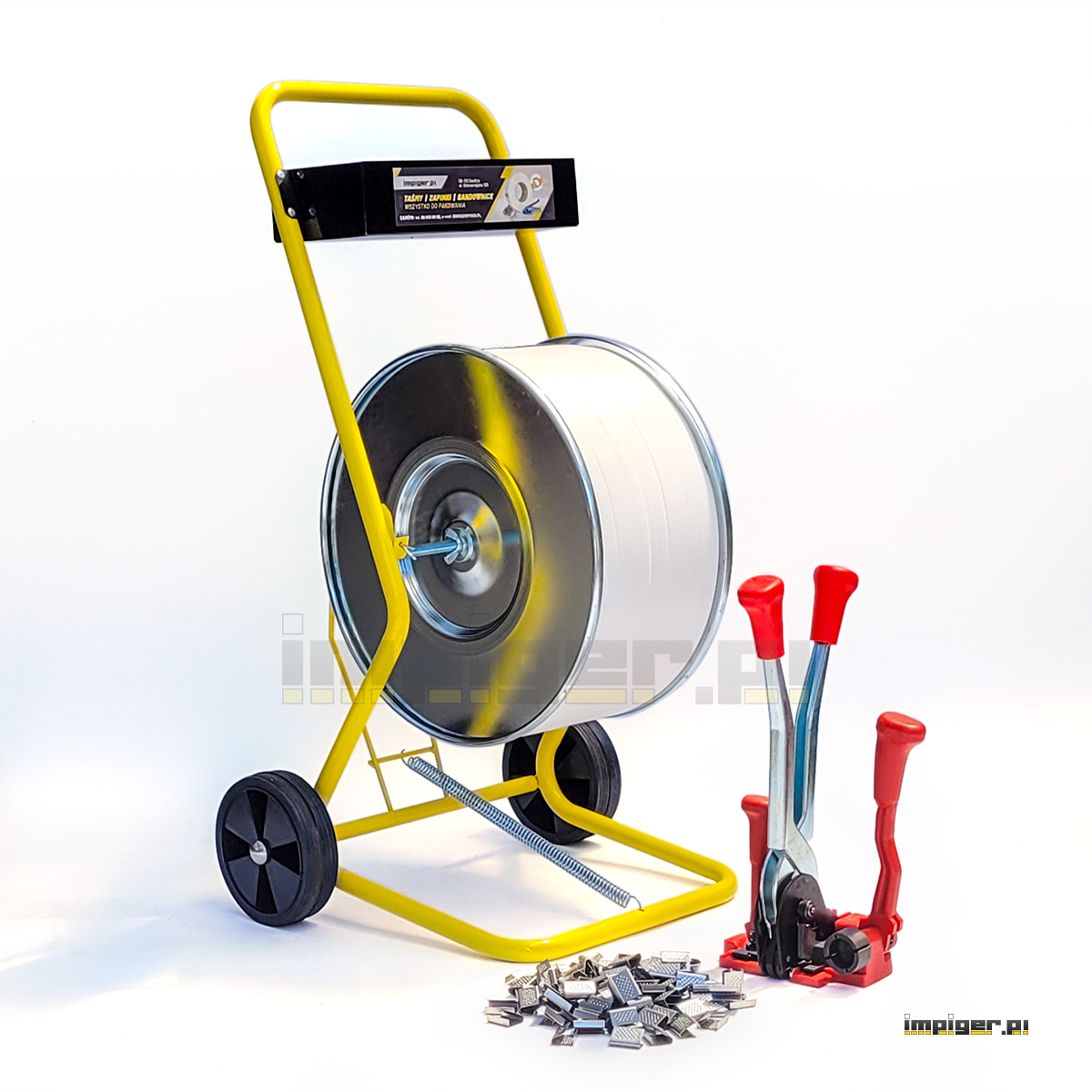 Zestaw do pakowania: taśma PP 12mm 2500m, zapinki, paskowacz XL, wózek odwijacz