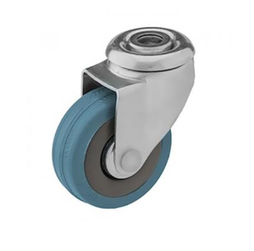 Koło z szarą gumą niebrudzącą na polipropylenowej piaście z łożyskiem ślizgowym przykrytym metalowymi ocynkowanymi osłonkami. Wyróżniają się cichą pracą, odporne są na uderzenia i doskonale tłumią drganie, nie niszcząc przy tym podłoża. KOŁO: WIDELEC: |