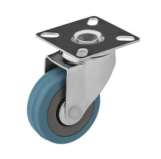 Koło z szarą gumą niebrudzącą na polipropylenowej piaście z łożyskiem ślizgowym przykrytym metalowymi ocynkowanymi osłonkami. Wyróżniają się cichą pracą, odporne są na uderzenia i doskonale tłumią drganie, nie niszcząc przy tym podłoża.